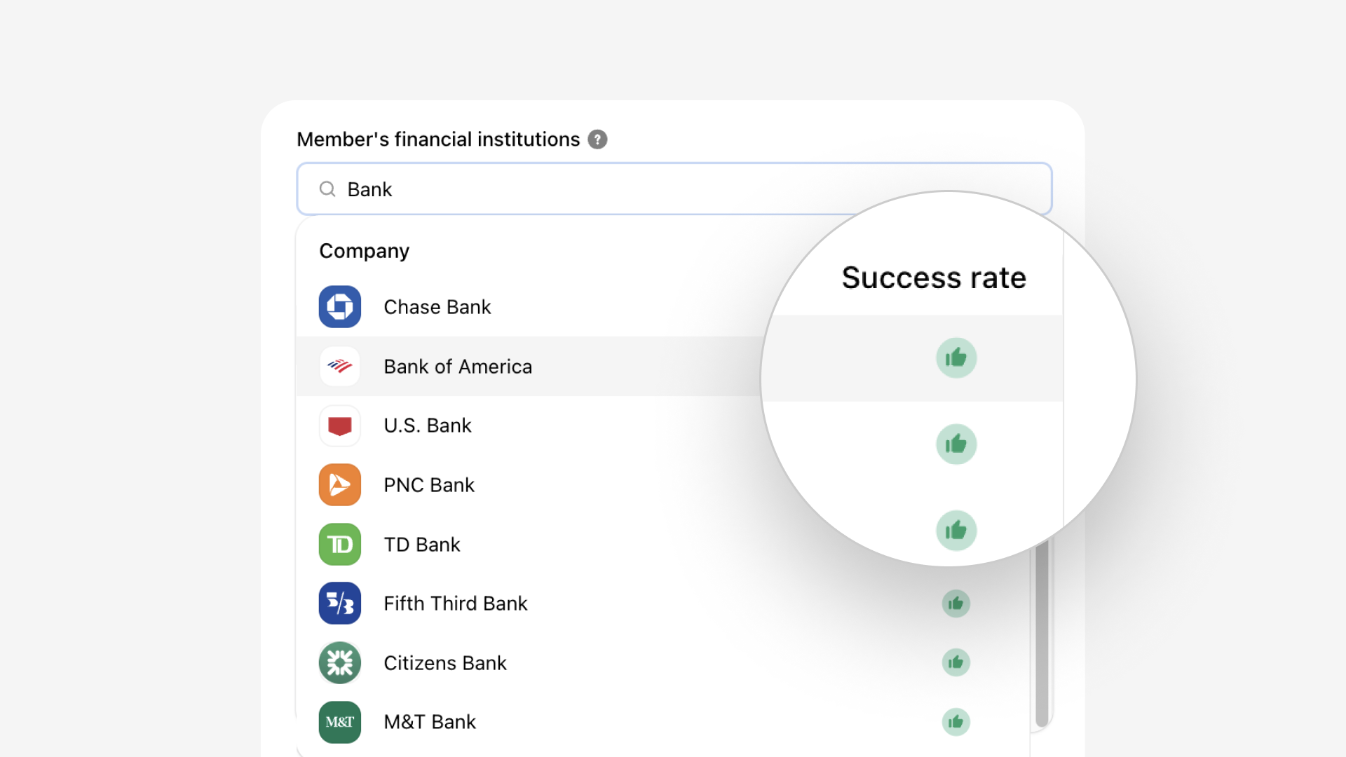 - Financial Institution Coverage Indicators for VOA: We have added financial institution coverage indicators to improve visibility into likelihood of successfully connecting. When a financial institution is added to an Assets or Transactions order, the success rate is shown.