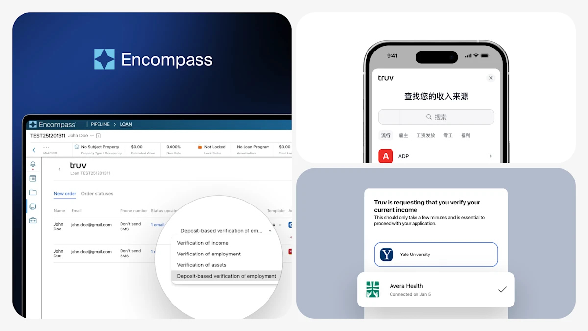 Truv’s 2025 year-end product releases deliver significant improvements to client workflows and end-user experiences, with a focus expanded functionality in Encompass and Truv Dashboard. Explore the latest developments at Truv!