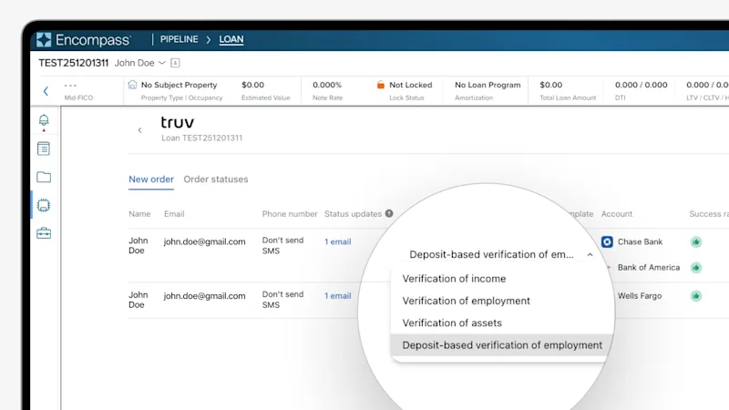 Truv’s latest Encompass improvements increase flexibility in order creation and generating new reports, ensuring frontline staff can quickly request and repackage verification data to keep the loan moving quickly.