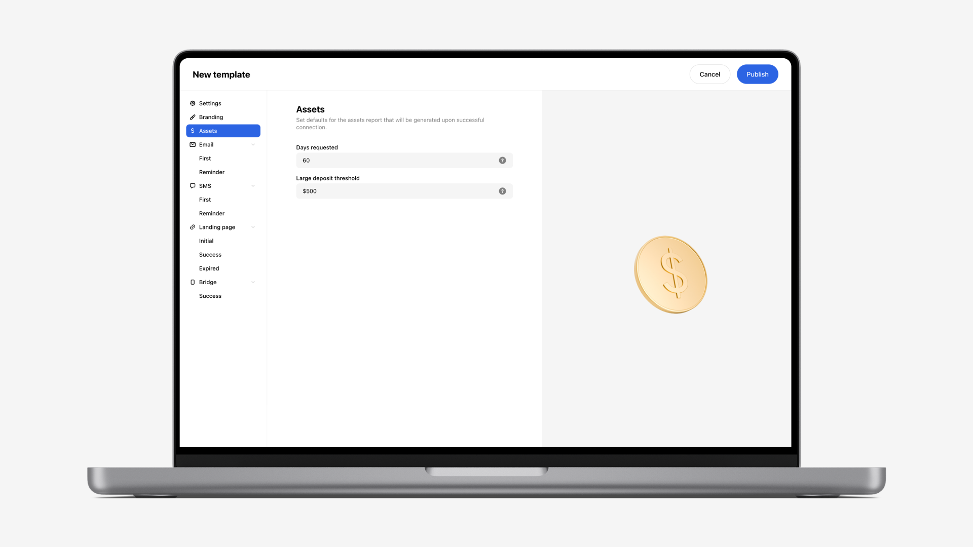 - Template Customization for Assets Parameters: For clients who use our VOA product, we have added the ability to customize the ‘Days requested’ and ‘Large deposit threshold’ in Truv Templates (new and existing) for the returned report. Clients using VOA in an embedded workflow can now request tailored thresholds on the assets report for different scenarios.