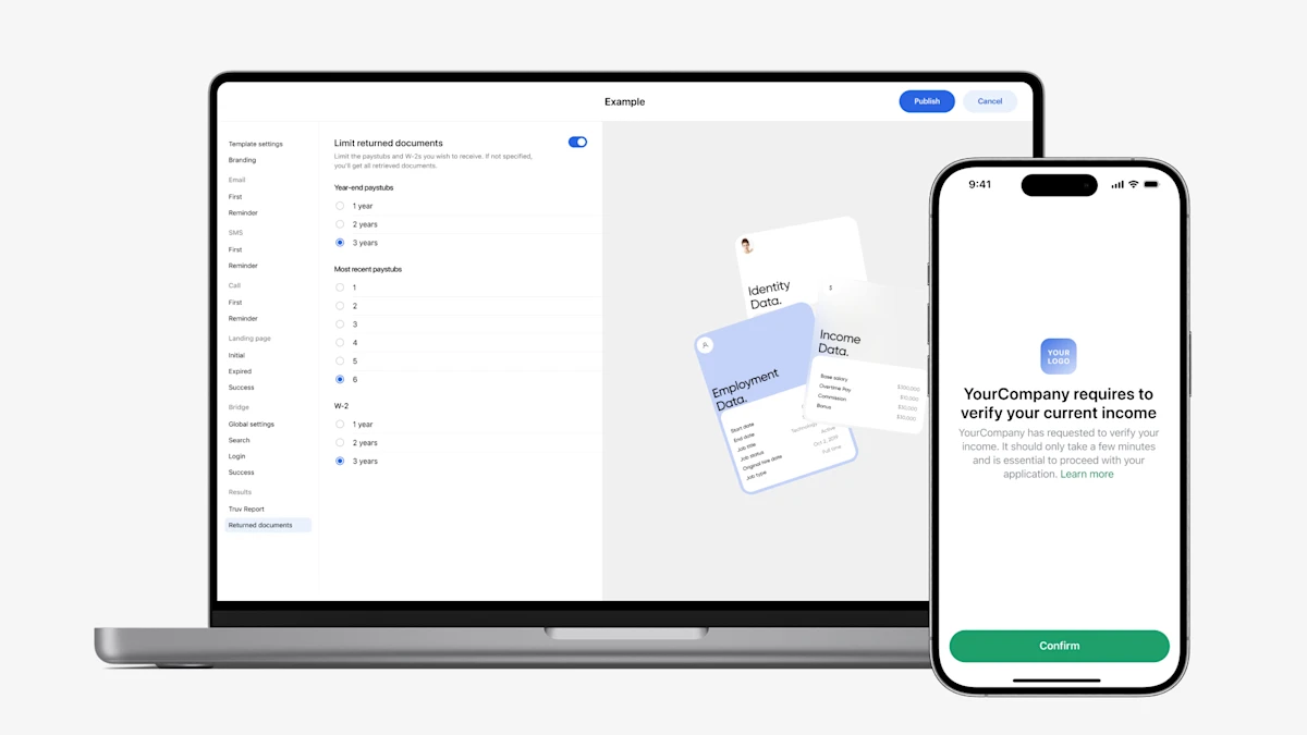 At Truv, our primary focus is dual-sided: deliver an unparalleled verification experience for our clients and deliver an unparalleled verification experience for their borrowers. Through our suite of dynamic products, we’re powering seamless verification workflows for our clients that improve loan cycles and boost operational efficiencies end-to-end. Take a deeper dive into how you can configure and customize Truv income and employment verifications to help your lending teams work faster and smarter.