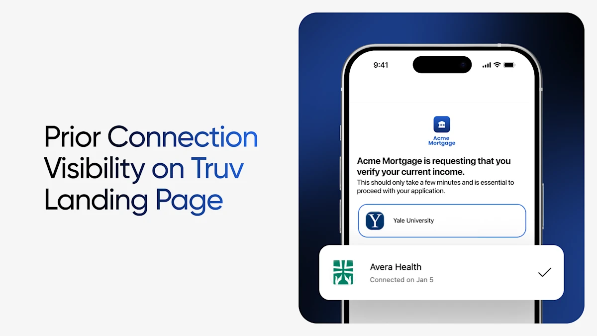 To reduce friction and increase confidence for lending teams and borrowers, Truv has released an enhancement to the borrower experience that introduces clear visibility into previously connected accounts—helping users understand exactly where they stand and what, if anything, is still needed on the verification front to move the loan forward.