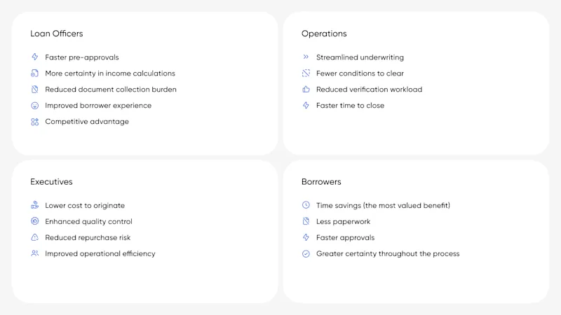 Training sessions, educational campaigns and widespread organizational awareness are critical to successful adoption. Ensure loan officers, processors, and underwriters understand not just how to use the new tools but why they’re valuable. This includes training on: