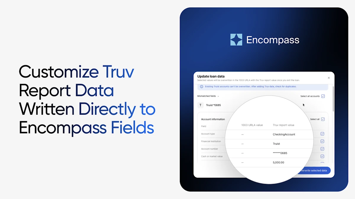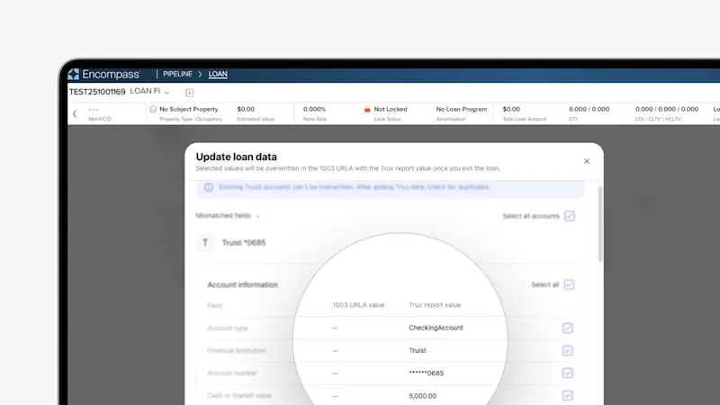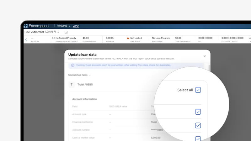 Managing loan files just got easier. Truv’s new data patching feature gives loan officers complete control over how verification data flows into Encompass, eliminating manual data entry and reducing errors in the loan origination process.