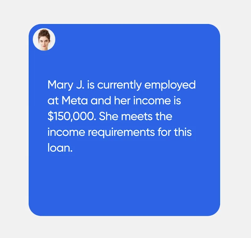Get started with Truv’s data aggregation platform today and witness the power of accurate, real-time data firsthand. Chat with us to learn more about how Truv can drive cost savings, reduce risk, increase efficiency, and help you approve more loans.