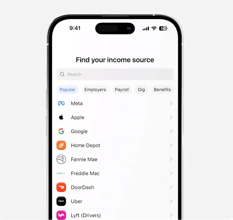 Image of Truv’s payroll aggregation capabilities that enable income and employment verification.