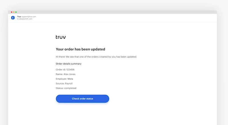 Tracking order shouldn’t be a manual process, so we added the ability to notify order creators with the status of orders they created in Encompass. These notifications include: User Name, Employer Name, Order ID, Source, and Status. This allows organization to keep creators informed and work more efficiently.