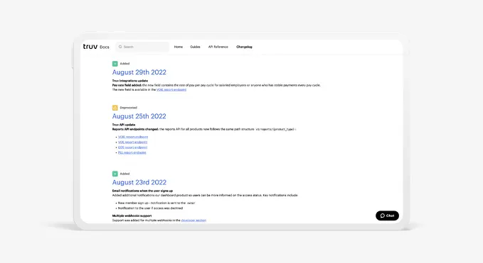 You asked, and we delivered! We’ve added Changelog to Truv Docs so we can keep you informed on all the changes that we push to production no matter how big or small. Check out Changelog