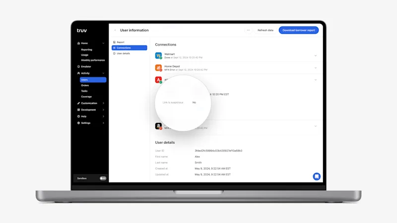 In November, we announced our integration with leading point-of-sale, Lodasoft. For lenders seeking to leverage Truv’s income and employment verification solution within the loan application, we’ve released an updated guide on how to enable Truv within the platform, now available in Truv Docs.