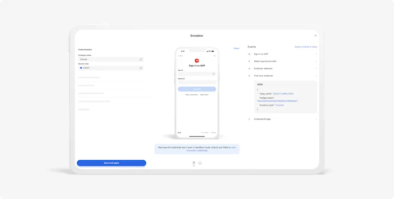 Redesigned Emulator in Truv Dashboard
