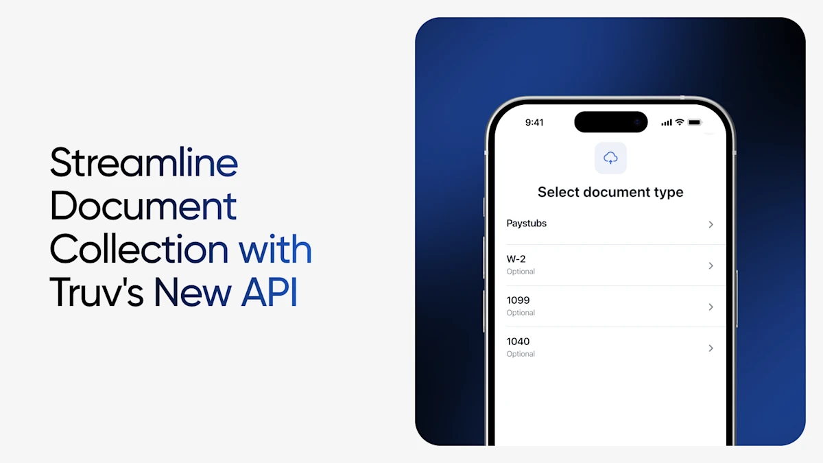 Document-based verification and collection doesn’t have to be complicated. Truv’s new API takes a complex, often frustrating process and makes it straightforward. Whether you’re building a new verification system or modernizing an existing one, this API provides the control and flexibility to do it right.