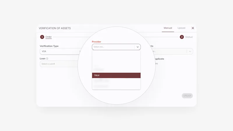 The integration of Truv’s verification products into LOLA™ is designed to be seamless, providing Lenders One members with a frictionless experience. Within the LOLA™ interface, lenders select Truv as the verification provider and create an order to send to a borrower in just a few clicks. Explore more on how it works.