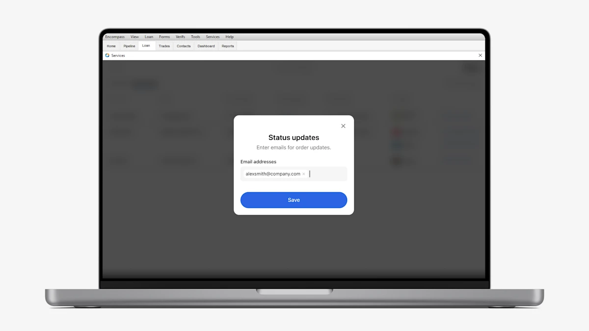 As orders are sent, loan officers now have the option to ensure their team, especially the loan officers, assistants and processors who are associated with the loan, has heightened visibility into order status updates. Now, email recipients of order status updates can be pre-set for the order. This saves time, prevents communication lags that disrupt borrower satisfaction, and boosts transparency for the operations team members who are critical in moving the file quickly through processing, underwriting, and closing.